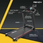 • QUALITY & DESIGN: Reach T-400 is a high-quality, automatic motorized, and easily operated treadmill. Best Exercise Equipment for your Home Gym. This motorized treadmill is effectively designed in a sleek and stylish finish to make your workout sessions a lot more convenient and easier. It has a compact and stylish design for easy storage and utility.