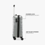 - One handle on the top, has a retractable trolley handle with 360 degree rotatable corner-mounted inline skate wheels